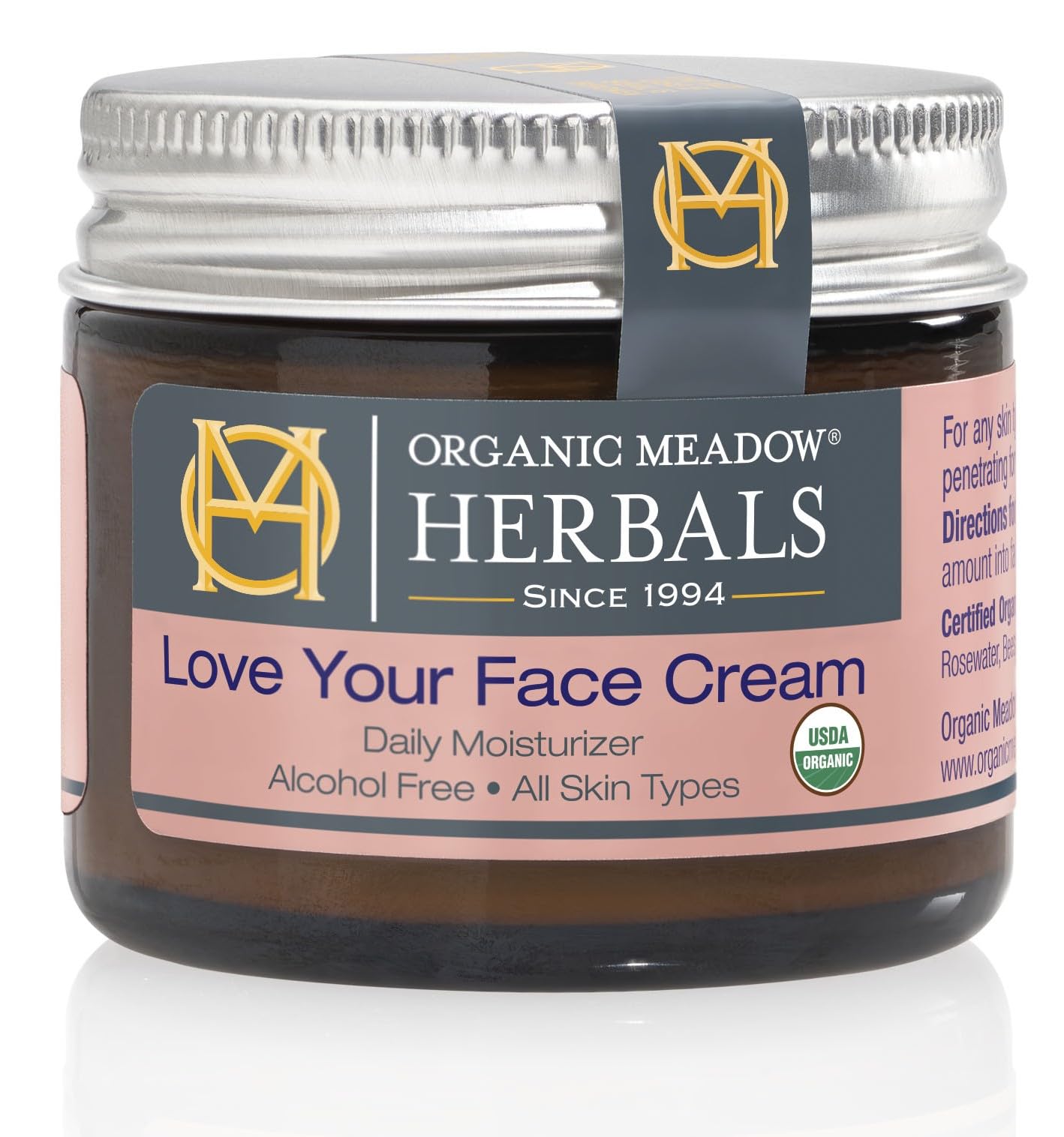 Organic Meadow Herbals Love Your Face Cream 2oz. USDA Certified Organic. Rich Facial Moisturizer for all skin types. Woman-owned & Operated Since 1994