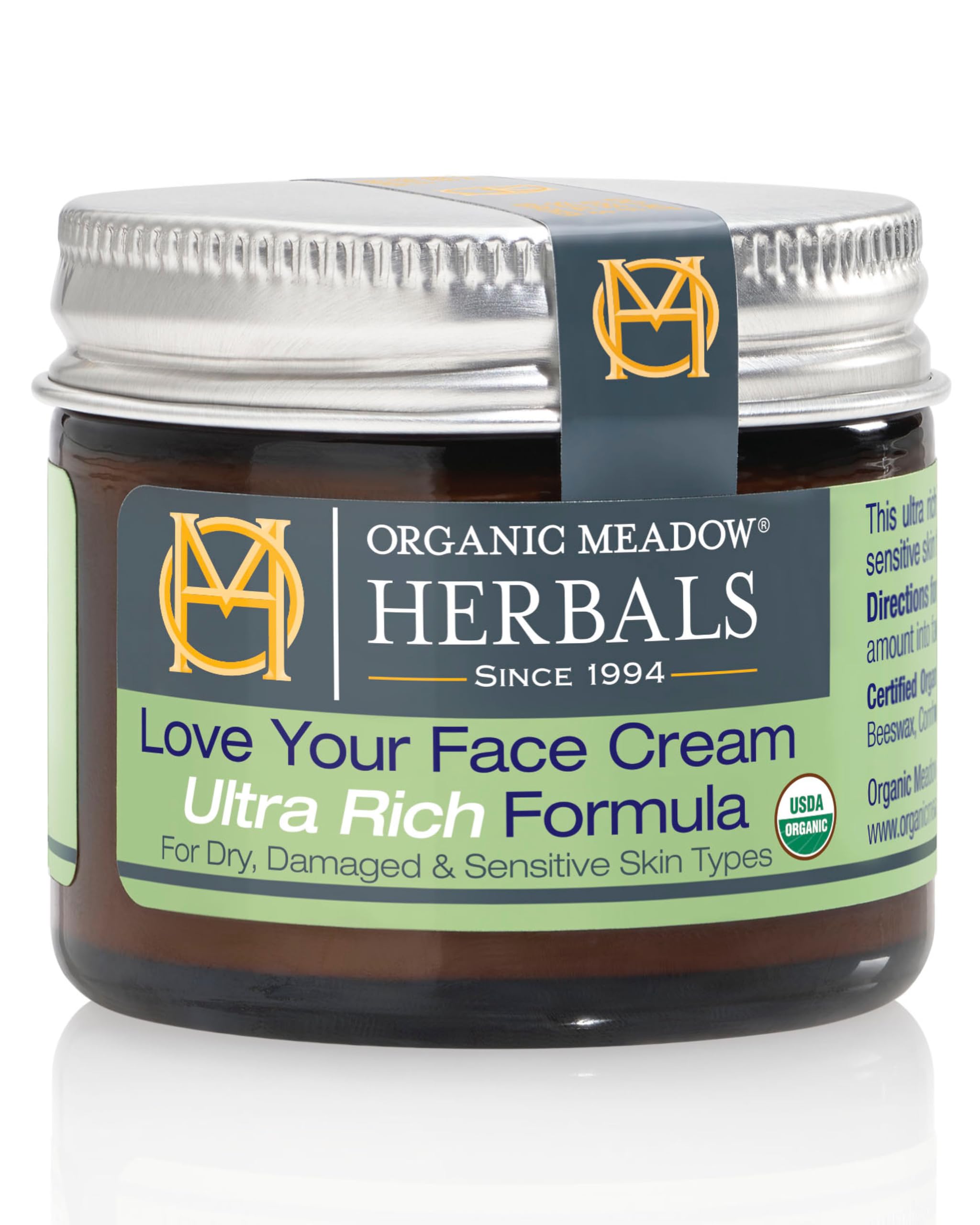 Organic Meadow Herbals Love Your Face Cream Ultra-Rich Formula (2oz) - USDA Certified Organic. Deep Penetrating Rich Moisturizer & Skin Repair Cream. Woman-owned & Operated Since 1994.