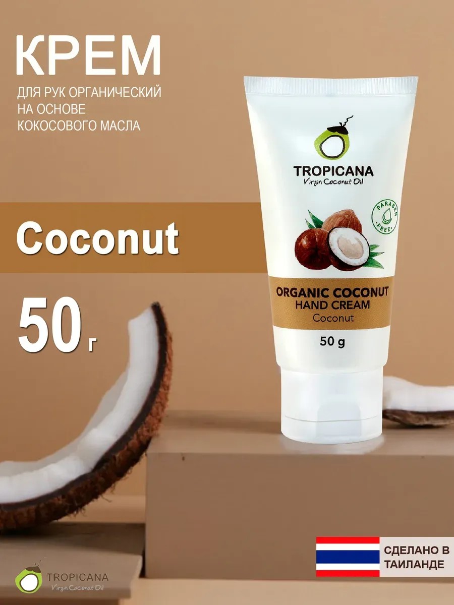 Tropicana Coconut Thai Organic Hand Cream - with natural coconut and shea butters, 50 ml, Tropicana. Natural ingredients make it an ideal choice for those who prefer organic cosmetics. Shea butter and coconut oil. Coconut oil has incredible moisturizing properties that help keep the skin on your hands soft and smooth. Shea butter promotes the healing of microcracks and prevents dehydration. Its pleasant coconut aroma allows you to enjoy relaxing moments of self-care. This moisturizing hand cream with coconut and shea butters gently cares for your hands, preventing dryness and flaking. Its rich formula allows it to penetrate deep into the skin, activating regeneration processes and stimulating natural hydration. It is an indispensable product for moisturizing, nourishing, and restoring dry and very dry skin, protecting against cracked hands. With its help, even the most chapped hands become soft and smooth. This nourishing cream has a light texture that absorbs quickly and leaves no sticky feeling, making it ideal for daily use. It can be applied to your hands at any time of day to maintain optimal hydration and nourishment. Its mini size allows you to take it with you on trips or vacations, where you'll always enjoy beautiful, well-groomed, and youthful-looking hands. Premium Thai brand Tropicana cosmetics are free of harmful chemical additives or artificial fragrances, making them safe and hypoallergenic. Thai cosmetics, made in Thailand, make excellent gifts for New Year's, birthdays, and any other occasion for loved ones, friends, and colleagues.