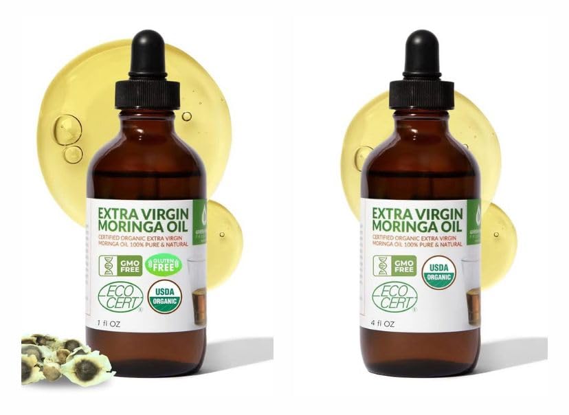 Experience nature's ultimate moisturizer in two convenient sizes with our Organic Moringa Oil Bundle. This set includes a 4oz full-size bottle for home and a 1oz mini bottle for travel or everyday carry — perfect for keeping your skin hydrated and glowing wherever you go. 100 Pure Extra Virgin: Our moringa oil is extracted from the seeds of Moringa Oleifera, using a cold-press method that preserves its natural nutrients and antioxidants. It's food-grade, chemical-free, and unrefined, ensuring unmatched purity and performance. Deep Hydration, Zero Grease: Absorbs instantly into the skin without clogging pores or leaving residue. Ideal for dry, sensitive, or mature skin — helping reduce wrinkles, fine lines, and irritation while enhancing elasticity and glow. ? Versatile Skin Hair Care: Use daily as a face moisturizer, scalp treatment, massage oil, cuticle conditioner, or healing balm for rashes, burns, and minor wounds. Sustainably sourced and bottled with care, our Organic Moringa Oil is your go-to all-in-one natural beauty essential. Bundle Includes: 1 x 4oz Organic Moringa Oil (Cold Pressed, Extra Virgin, Food Grade) 1 x 1oz Organic Moringa Oil (Cold Pressed, Extra Virgin, Food Grade – Travel Size) Pure. Potent. Naturally Beautiful.Glass Bottles with Droppers – Packaged in durable, eco-friendly amber glass bottles to protect freshness. Includes droppers for easy, mess-free application. Food-grade, cruelty-free, and sustainably sourced. Multi-Purpose Beauty Oil – Perfect as a facial moisturizer, massage oil, hair treatment, or healing balm. Helps soothe rashes, burns, cuts, and insect bites while promoting soft, healthy skin and shiny hair. Deeply Moisturizing Anti-Aging – Rich in antioxidants, vitamins A and E, and essential fatty acids, this luxurious oil absorbs instantly to hydrate skin, reduce fine lines, and restore natural radiance. 100 Pure Cold Pressed – Extracted from premium Moringa Oleifera seeds through the first cold press for maximum potency. No additives, fillers, or synthetic ingredients — just pure, extra virgin moringa oil in every drop. Two Sizes for Every Need – Get the best of both worlds with our Organic Moringa Oil Bundle, featuring a 4oz full-size bottle for home use and a 1oz travel bottle for on-the-go hydration and skincare.