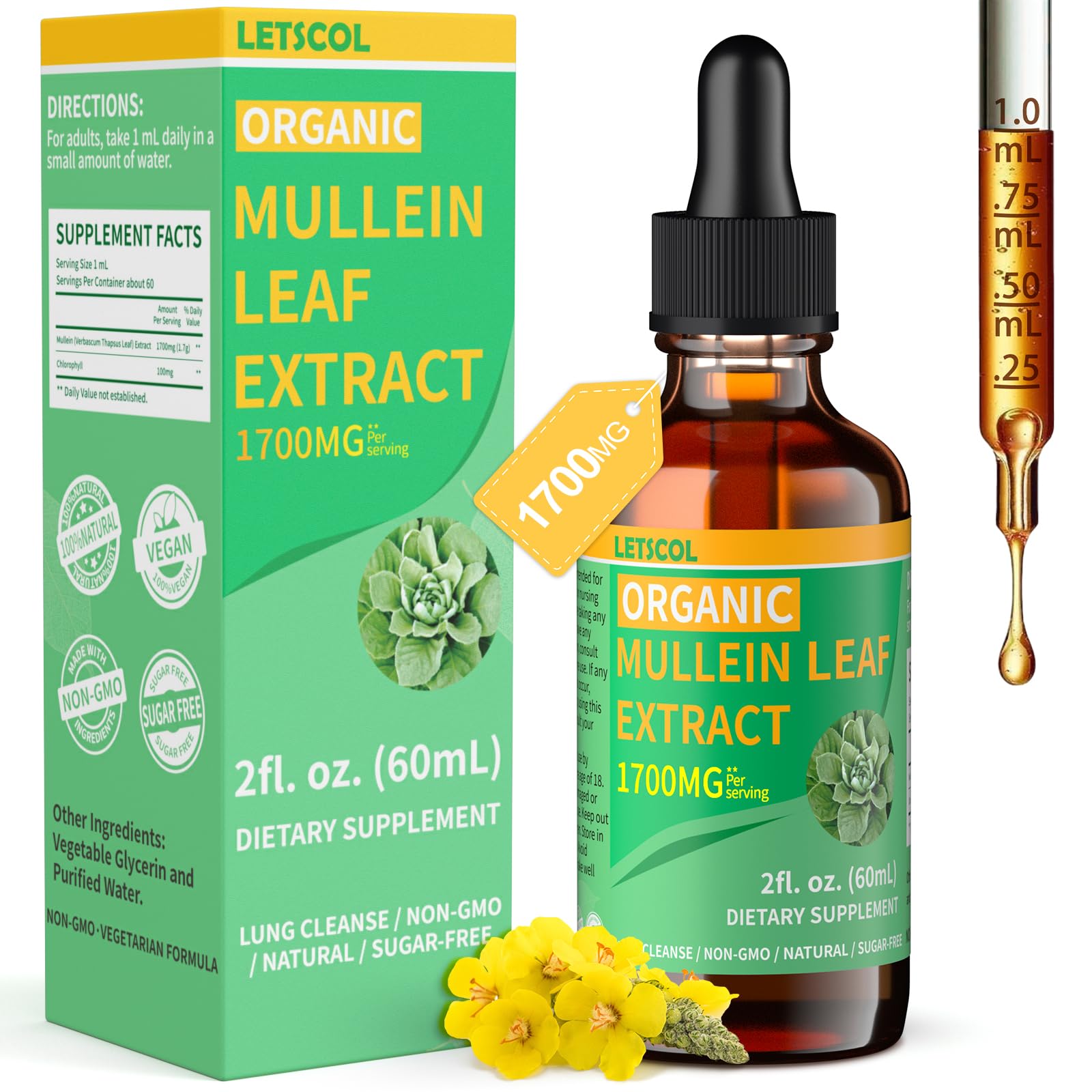 Quality Service-LETSCOL aims to provide you with quality and excellent products and shopping experience. If you have any questions about our products, please contact us directly and we will provide you with solutions in a timely manner. Premium Natural Formula - Mullein Leaf Drops are made with a natural and organic formula. Non-GMO, sugar-free, alcohol-free and vegan. We have rigorous quality testing, use advanced technology, and manufacture in a GMP facility to ensure trustworthy high quality standards and safety qualities. Fast and Effective Absorption - Our advanced tincture formula is absorbed by the body faster to experience more effective health benefits. For even better results, mix it with water or simply place a few drops under your tongue. Feel the new changes in your lungs with every drop of Mullein Leaf Organic Supplement. 1700MG Potent Lung Extract - Naturally pure Mullein Leaf Extract effectively boosts respiratory health by helping to cleanse the lungs, reduce mucus production, and enhance lung health. Each drop has a powerful effect to rejuvenate the lungs!. Organic Mullein Drops - Mullein leaves are a traditional herb that we have extracted the active ingredients for respiratory and lung health into powerful lung moisturizing Mullein Drops. It effectively cleanses the lungs and bronchial tubes, improves lung function and allows you to breathe more freely.