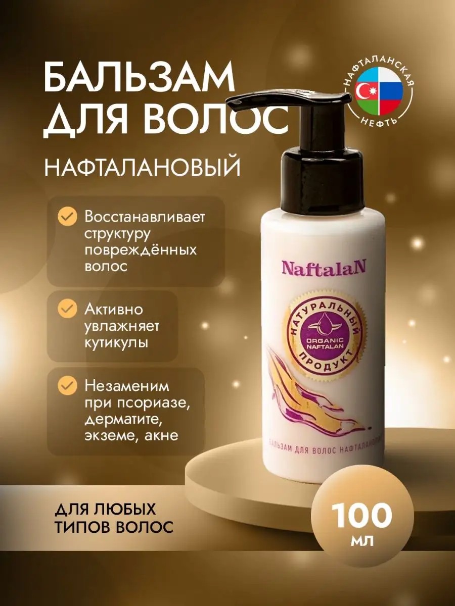 Naftalan Hair Balm is more than just a hair care product. It's a true elixir of health that gives your locks strength and shine. The balm actively fights dandruff, soothing the scalp and normalizing its condition. The product is suitable for all skin types: from normal to problematic. It is specially formulated to be compatible with all hair types: from fine to coarse and frizzy. What makes this balm unique is that it is suitable for both the ends (fighting split ends) and the entire length of the hair—from roots to tips! After using the balm, hair becomes smooth and moisturized. The restorative effect is achieved due to the presence of naphthalan. Naftalan Hair Balm from Organic Naftalan Oil is not only high-quality cosmetics but also cares for the health of your hair. Hair care has never been so enjoyable and effective! Naftalan Hair Balm is the ideal product for damaged, brittle, and dry hair. Its strengthening action deeply nourishes each strand, making it stronger and healthier. Even the most stubborn locks will become incredibly soft and smooth after using this oil. The large volume of the product (ml) allows for its economical use over a long period. Naftalan Hair Balm is a universal care product that provides a comprehensive effect. It combats frizz, makes hair smooth, and intensively moisturizes. Moreover, this balm acts as a nourishing mask: it penetrates each strand, saturating it with beneficial elements and activating the regeneration process. This helps significantly strengthen the hair structure along its entire length. Thus, using this product will not only help restore your locks to a healthy appearance but also protect them from negative environmental factors.