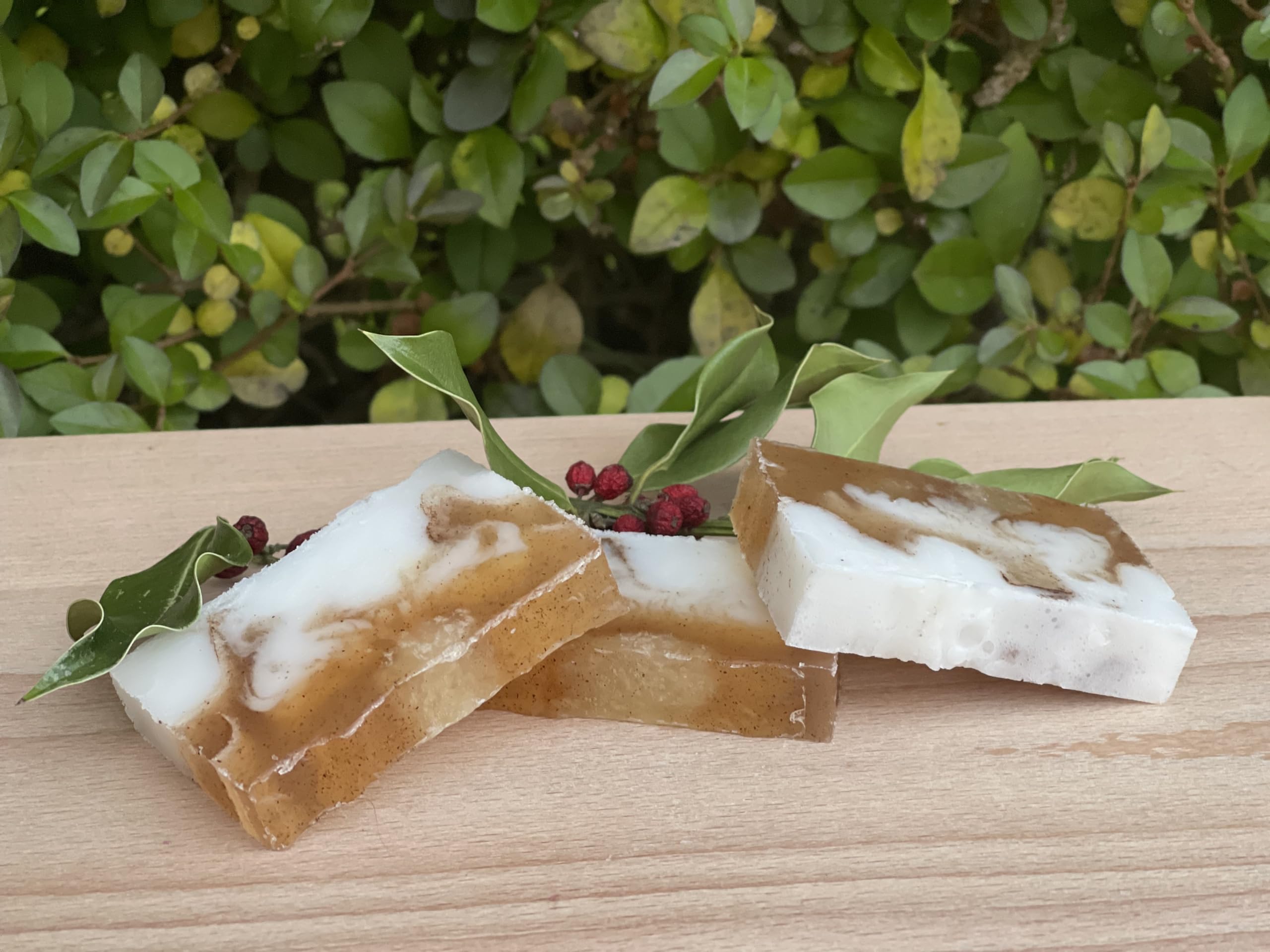 Luxurious organic soap for pampering skincare. Infused with honey, cinnamon, sea buckthorn oil, and macadamia oil. Handmade with love for a unique artisanal touch. Inspired by ancient beauty rituals for timeless radiance. Sustainable packaging for earth-conscious beauty. Deeply hydrates with honey, leaving skin soft and supple. Invigorating warmth of cinnamon for a sensory experience. Rejuvenates with sea buckthorn oil and macadamia oil. Holistic wellness for mind, body, and spirit.