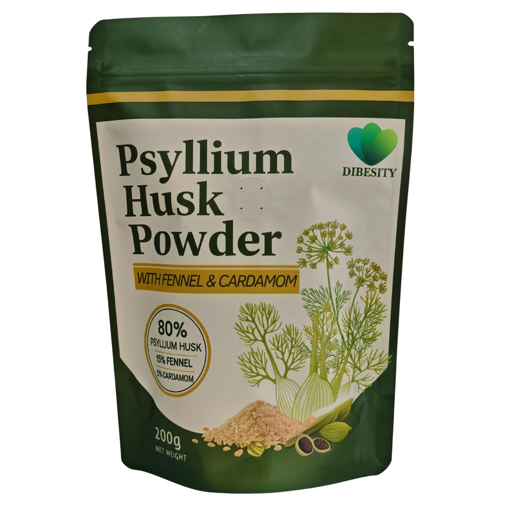 Organic Natural Psyllium Husk Powder with Fennel and Cardamom Digestive Fiber Blend for Gut Health Support 200g Powder Form