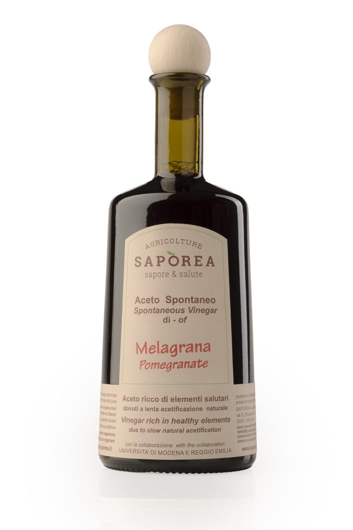 Organic pomegranate vinegar obtained by slow natural acetification from pomegranate juice of the Horse's Tooth unpasteurized