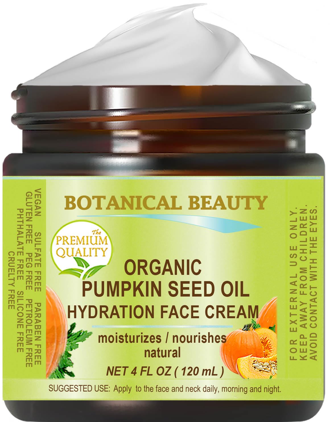 ORGANIC PUMPKIN SEED OIL HYDRATION FACE CREAM. For NORMAL - DRY - SENSITIVE SKIN. 4 Fl. oz - 120 ml. Hydrating Moisturizing Nourishing Rejuvenating Smoothening Softening 4 Fl Oz (Pack of 1)