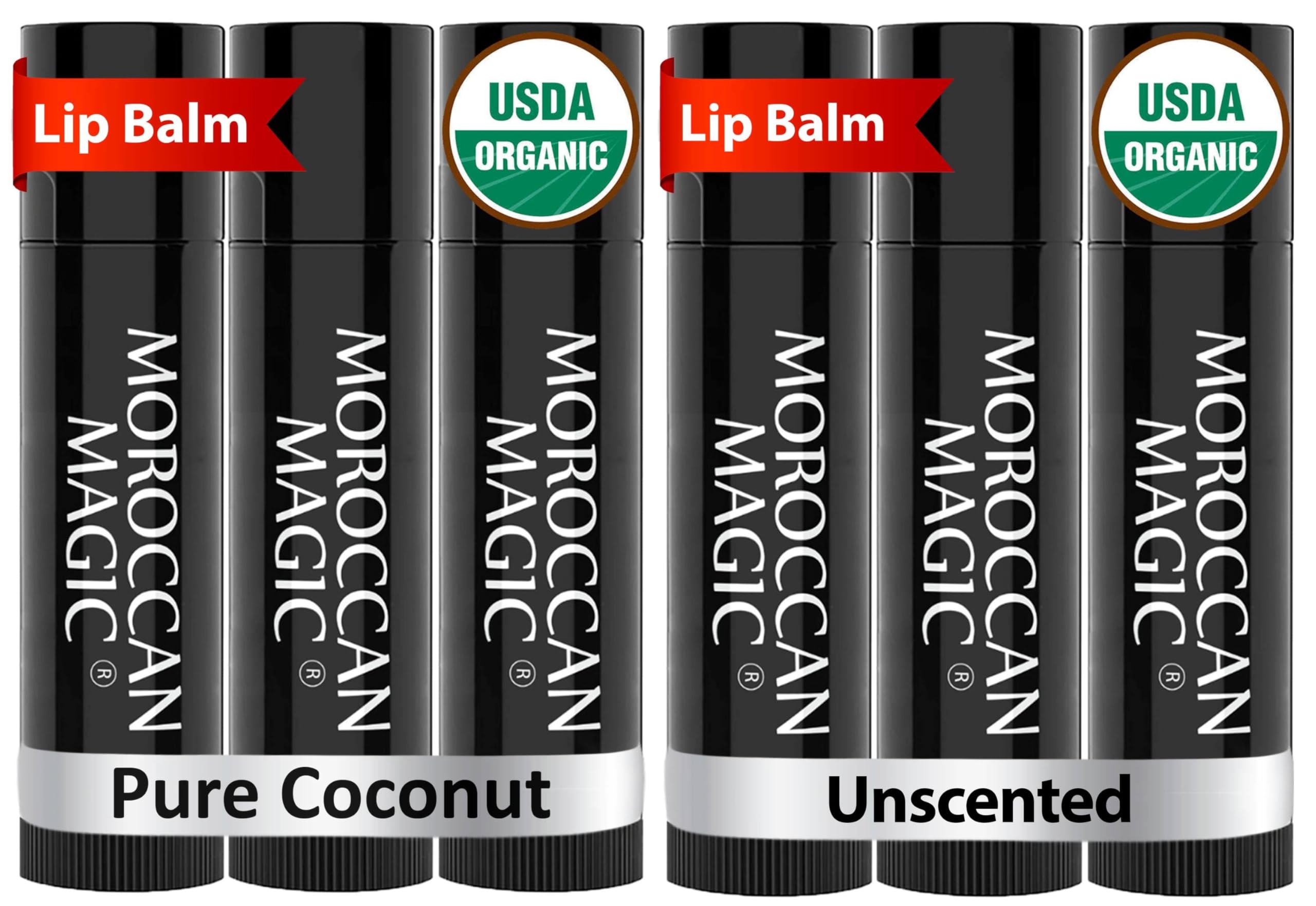 Organic Pure Coconut and Original Unscented Lip Balm Bundle (6 balms)