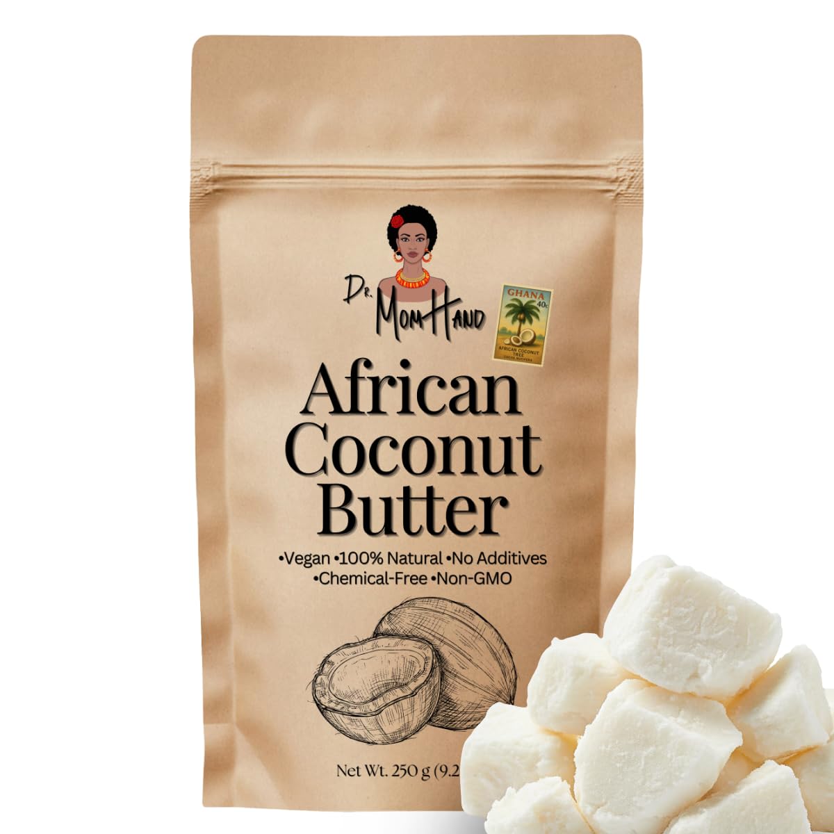 CONVENIENT SIZE: Comes in a 3.53oz (100g) resealable kraft paper pouch for easy storage and application. HAIR CARE: Helps prevent split ends, adds natural shine, and strengthens hair strands while protecting from breakage. NOURISHING PROPERTIES: Rich in natural fatty acids that help strengthen skin barrier, enhance elasticity, and protect against dryness. VERSATILE USES: Perfect as a moisturizer for skin and hair, can be used as a natural makeup remover, and is safe for consumption. PURE NATURAL: 100 organic extra virgin coconut butter sourced from Africa, raw and unrefined with no additives or chemicals.