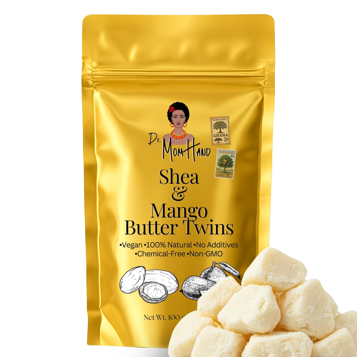 Dr. Mom Hand Mango Butter is 100 pure, organic, unrefined, and additive-free.