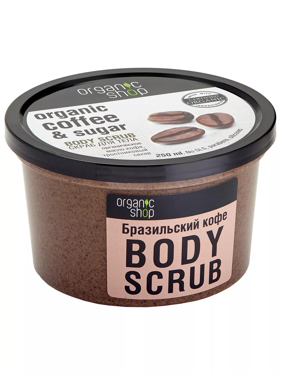 Organic Shop Скраб для тела Бразильский кофе 250мл. Кофейный сахарный скраб Organic Shop представляет собой роскошное средство для глубокого очищения и обновления кожи, созданное на основе натуральных ингредиентов. В его основе лежит гармоничное сочетание органического масла кофе и тростникового сахара, которое обеспечивает комплексный уход за кожей.