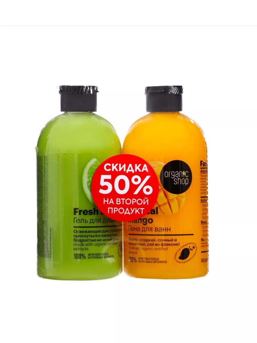Organic Shop Подарочный набор Гель для душа Fresh Lime + Пена для ванн тропический манго 2шт 500 мл.