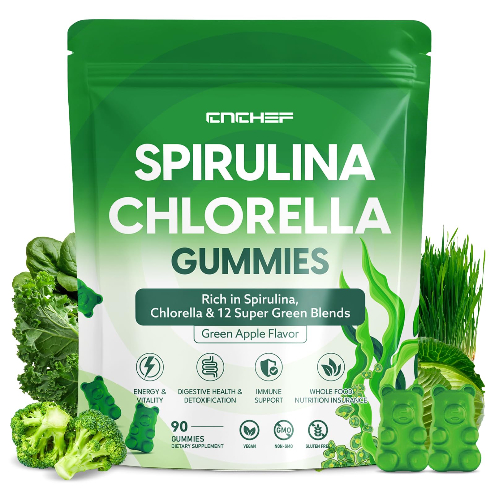 Clean, Trusted Formula: Made with integrity for your peace of mind. Our gummies are produced in certified (cGMP) facilities for purity and potency. They are Non-GMO, Vegan, Gluten-Free, Dairy-Free, and Sugar-Free, ensuring a clean, safe, and effective supplement that aligns with your healthy lifestyle and dietary preferences. A Delicious, Juicy Gummy—No Powders or Sugar: Enjoy your greens the tasty way. Our refreshing Green Apple-flavored gummies offer a soft, juicy texture that makes taking your supplements a pleasure. Made without sugar, they are naturally sweetened for a guilt-free experience. Say goodbye to hard-to-swallow pills and powders—just chew and enjoy the hassle-free power of superfoods. Boost your energy, immunity, and cellular health daily: Improve your overall health every day. These gummies are packed with energy-boosting nutrients and powerful antioxidants, with superfood ingredients at their core. They strengthen the immune system, promote cell repair, and help you stay focused and energetic throughout the day. Power Up Your Day with 12 Super Greens Antioxidants: Go beyond the basics with a potent, nutrient-rich blend. In addition to Spirulina and Chlorella, our gummies are fortified with a powerful supergreen mix including Broccoli, Moringa, and other greens. This formula is bursting with antioxidants, vitamins, and minerals to nourish your body, boost immunity, and support vibrant health from the inside out. Harness the Power of Ancient Superfoods in a 1:1 Ratio: Fuel your body with nature's original superfood duo. These gummies combine Spirulina, packed with plant-based protein and B-vitamins for energy, with Chlorella, a natural detox champion. This perfect 1:1 blend works synergistically to boost vitality, support cleansing, and enhance overall wellness, delivering pure, nutrient-dense goodness in every serving.