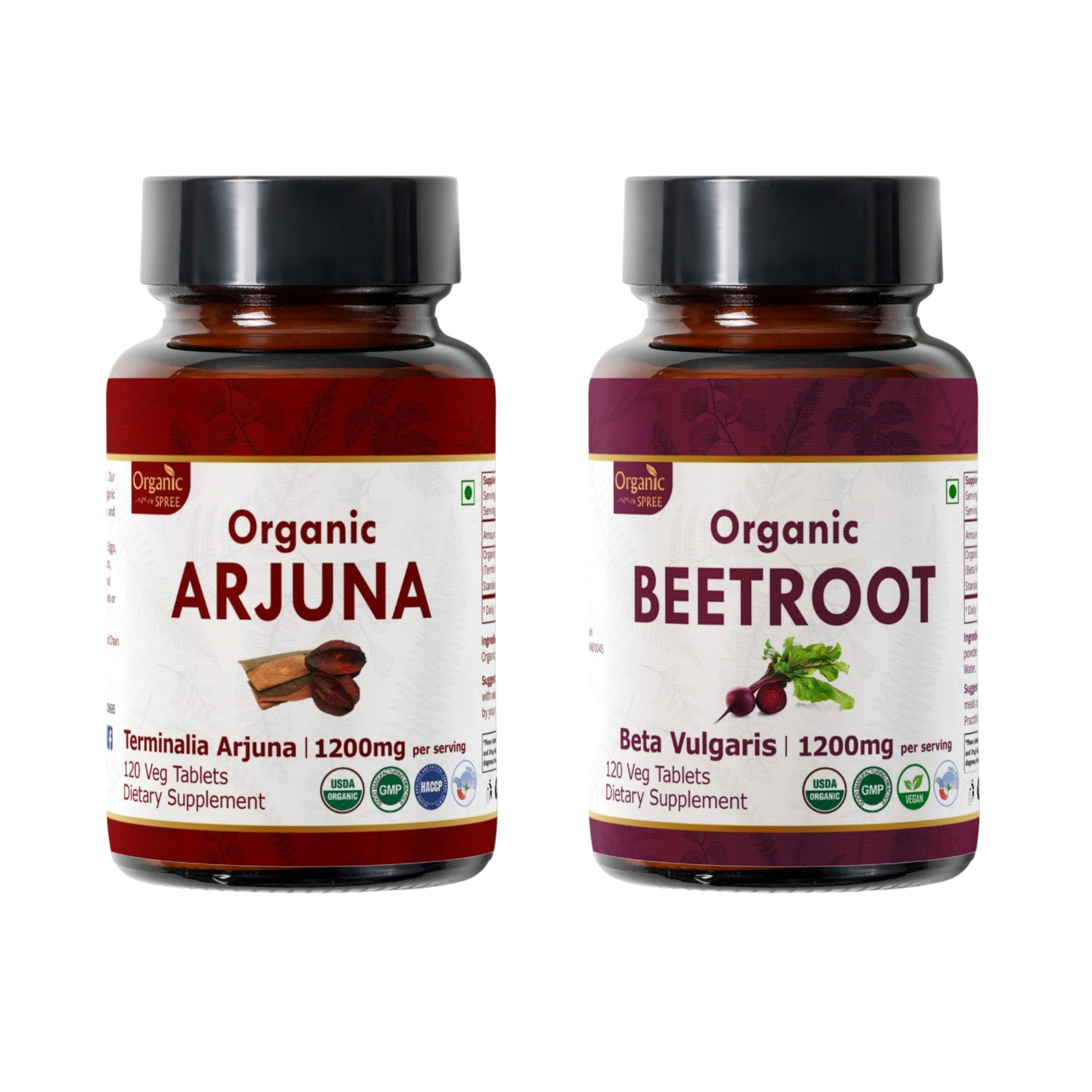 ORGANIC SPREE Arjuna & Beetroot Supplement 120 Tablets Each USDA Organic,Terminalia Arjuna & Beta Vulgaris