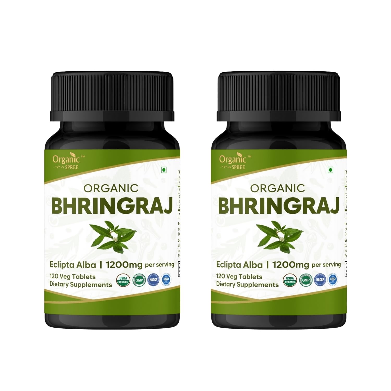 ORGANIC SPREE Bhringraj 120 Tablets | Eclipta Alba (Bhringraj) | USDA Organic Certified | Ayurvedic Hair Care* | Organic and Natural 120tab - Pack of 2