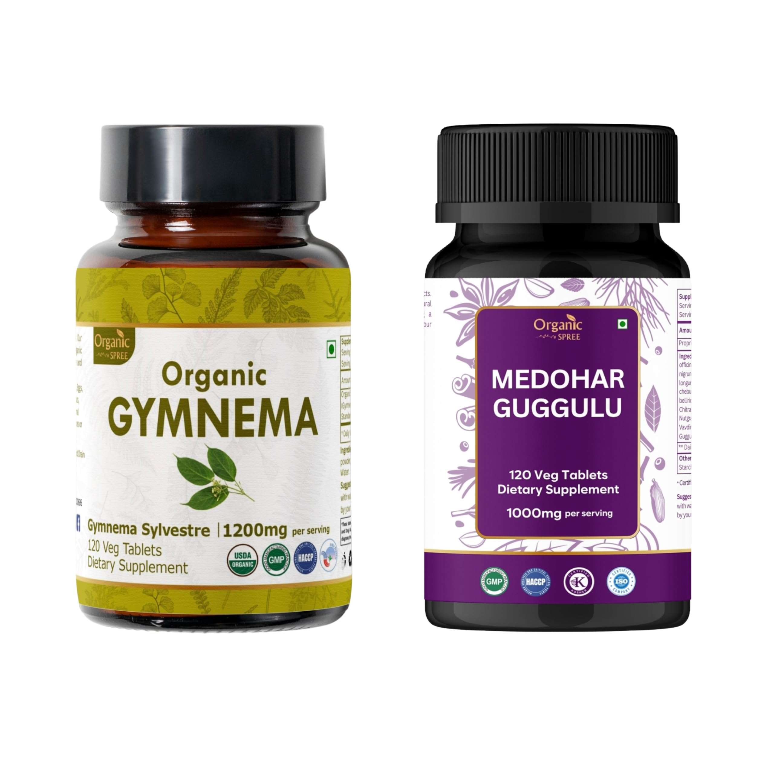 ORGANIC SPREE Gymnema & Medohar Guggulu USDA Organic Gymnema Sylvestre 120 Tablets & Ayurvedic Metabolic Blend Supports Metabolism & Immune Health*