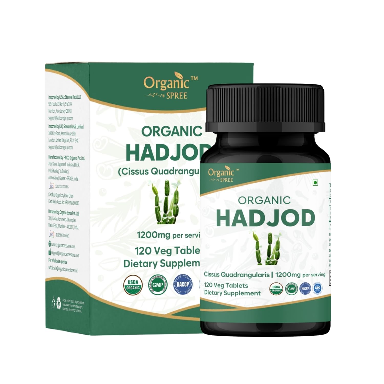 Organic Hadjod may support bone strength and promote joint flexibility and resilience . Quality and Safety: Organic Spree Cissus (Hadjod) is produced in a third-party GMP-certified facility that adheres to strict Good Manufacturing Practices. Our comprehensive testing protocols confirm its identity, potency, and safety using recognized industry standards and advanced methods. . Storage: Keep the tablets in a cool, dry place away from direct sunlight to maintain their potency and extend shelf life. . Made with Goodness: Organic Spree Cissus (Hadjod) Tablets are USDA Organic Certified, vegetarian-friendly, and contain no artificial colors, flavors, or preservatives. Enjoy the benefits of Organic Cissus (Hajod) in every tablet. . Nutritious Superfood: Discover the premium quality of Organic Spree's Cissus (Hadjod) Tablets. Our formulation captures the finest nutrients from freshly harvested Cisus stem. .