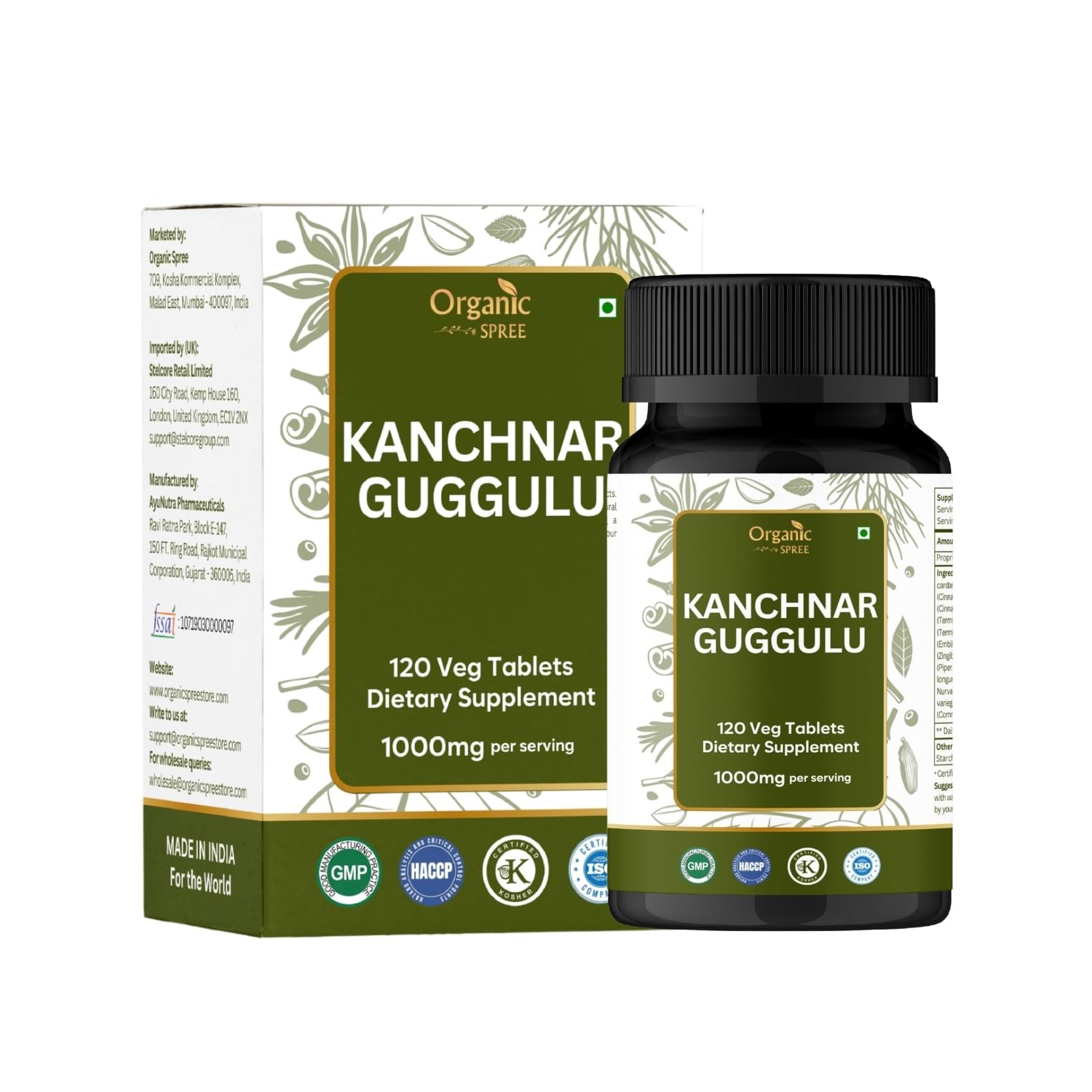 ORGANIC SPREE Kanchnar Guggulu 120 Tablets - Supports Detox and Lymphatic Health* - Ayurvedic Formulation - Certified and Vegetarian
