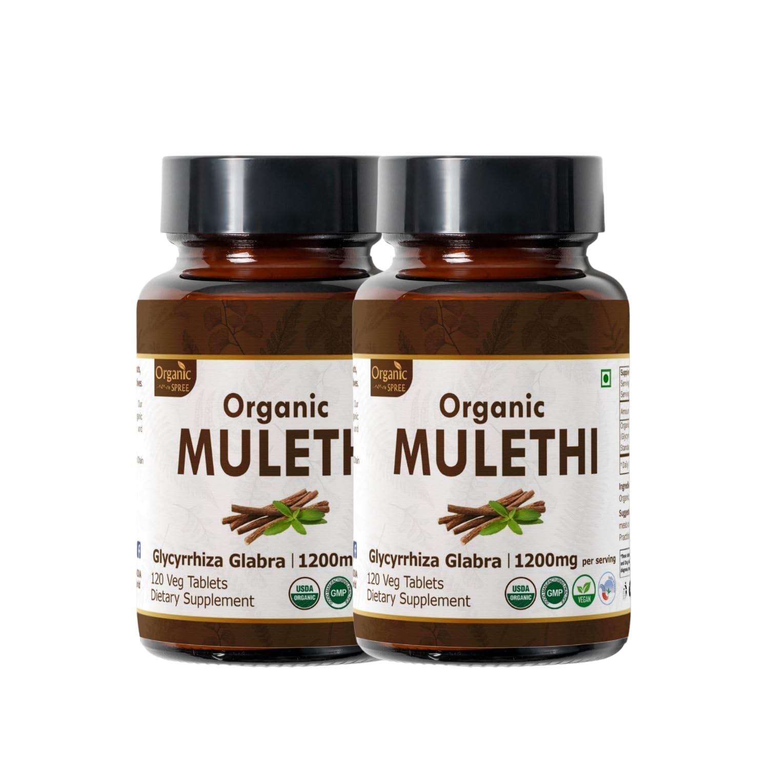 ORGANIC SPREE Mulethi 120 Tablets USDA Organic Licorice Root Supports Digestive Health & Immunity* - Pack of 2
