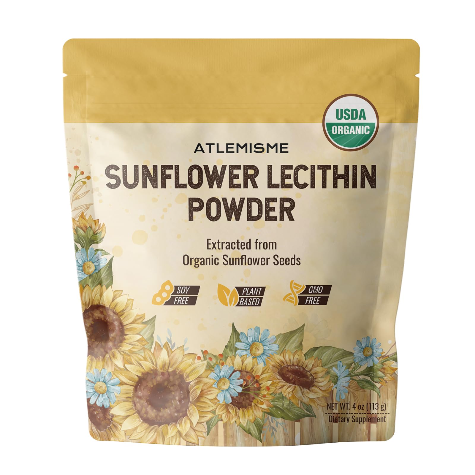 Quality Freshness: cGMP 3rd Party Tested - Rigorously tested for purity and potency. Resealable 4oz (113g) pouch locks in freshness and includes a complimentary measuring scoop for precise, mess-free portioning—quality and convenience from first use to last. Pure Plant-Based Emulsifier - A perfect alternative! Sourced directly from sunflowers, this lecithin avoids common allergens and phytoestrogens. Its neutral flavor and excellent emulsifying ability deliver smoother textures to beverages and foods without any additives. Pure Certified: Organic, Non-GMO, Vegan - We use a single pure ingredient. Certified organic, non-GMO, gluten-free, and soy-free. Rich in natural phosphatidylcholine and essential fatty acids, it supports your overall wellness. Dual-Purpose: Daily Supplement Kitchen Pro - Not just a supplement! This sunflower lecithin is also a versatile plant-based thickener and binder. From homemade nut milks to sauces and desserts, it adds the perfect texture and stability to your recipes. High-Potency Support for Brain, Liver Heart Health - Features a concentrated source of Phosphatidylcholine, a key nutrient renowned for promoting cognitive function, supporting healthy liver metabolism, and aiding in the maintenance of balanced cholesterol for cardiovascular wellness.