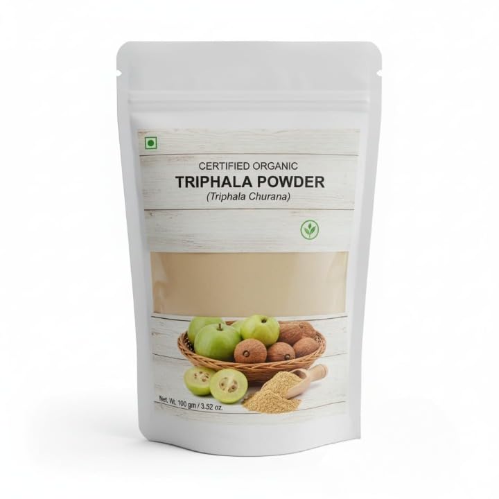 Organic Triphala Powder Ayurvedic Churna Herbal Blend of Harad Bahad & Amla Helps in Digestion & Bowel Movement 100gm