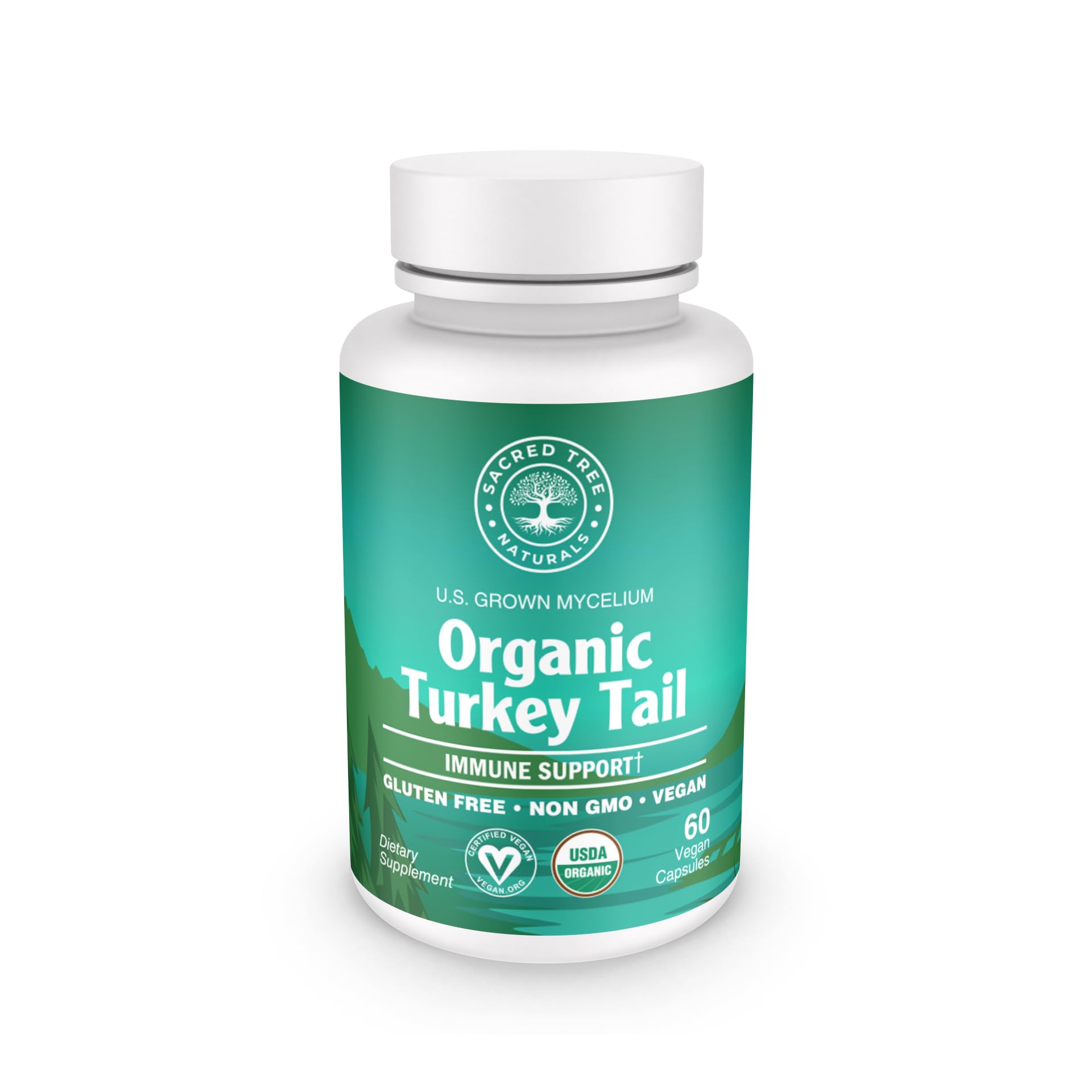 Boost your immune system and promote gut health with our Organic Turkey Tail Mushroom Capsules. Made from organically grown Turkey Tail mushrooms, this powerful superfood has been used for centuries to support immune function and improve digestive well-being. These capsules are perfect for anyone looking to enhance their body's natural defenses and maintain overall wellness. With a rich history in traditional medicine, Turkey Tail mushrooms are a natural way to nourish your body from the inside out. Our capsules are easy to incorporate into your daily routine, providing a convenient and potent dose of this immune-boosting superfood.