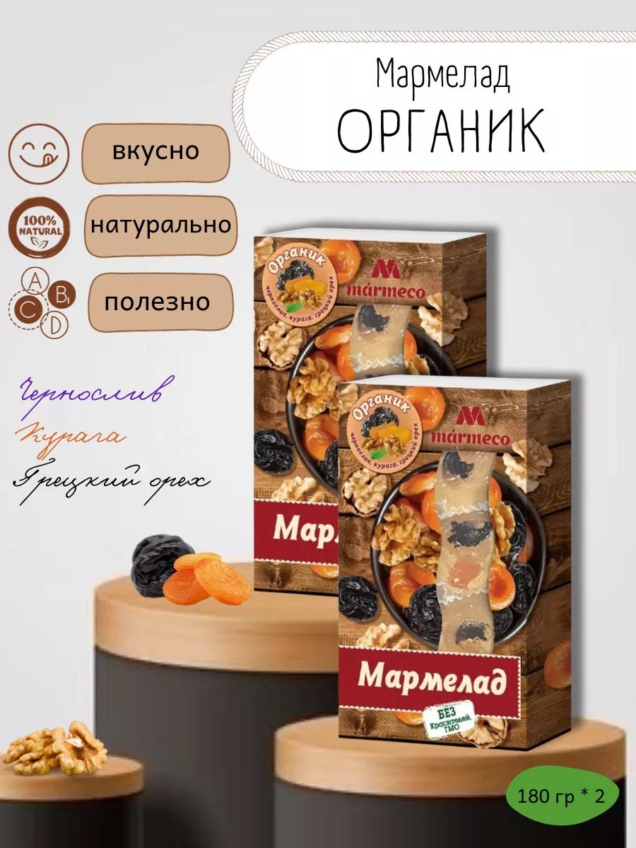 Мы используем мед, грецкий орех, курагу, чернослив, которые дарят мармеладу неповторимый вкус и насыщают его ценными микроэлементами. Деликатная обработка компонентов сохраняет их полезные свойства, что делает этот мармелад не только вкусным, но и полезным. Наш мармелад обогащен пектином, который способствует нормализации обмена веществ и улучшает работу ЖКТ. При этом он не вредит фигуре и даже рекомендован при диете. Органический мармелад "Органик" - это уникальное сочетание вкуса и полезных свойств. Он подарит вам нежное удовольствие, и важно отметить, что это натуральный мармелад.