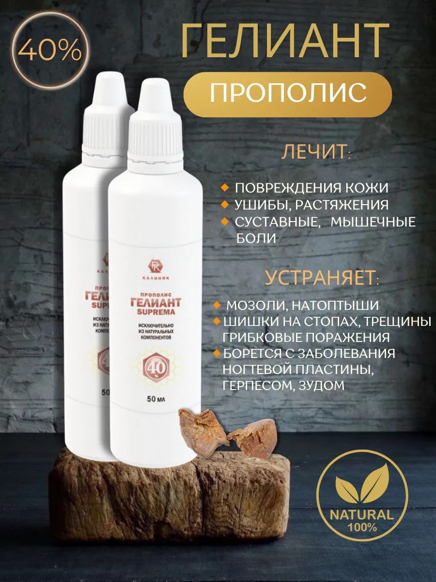 Прополис Гелиант 40% "Suprema" предназначен для проникновения и оказания оздоровительного воздействия при патологических изменениях и проблемах самых плотных тканей организма человека - подошва стоп, ладони кистей рук, ногтевые пластинки пальцев рук и стоп.