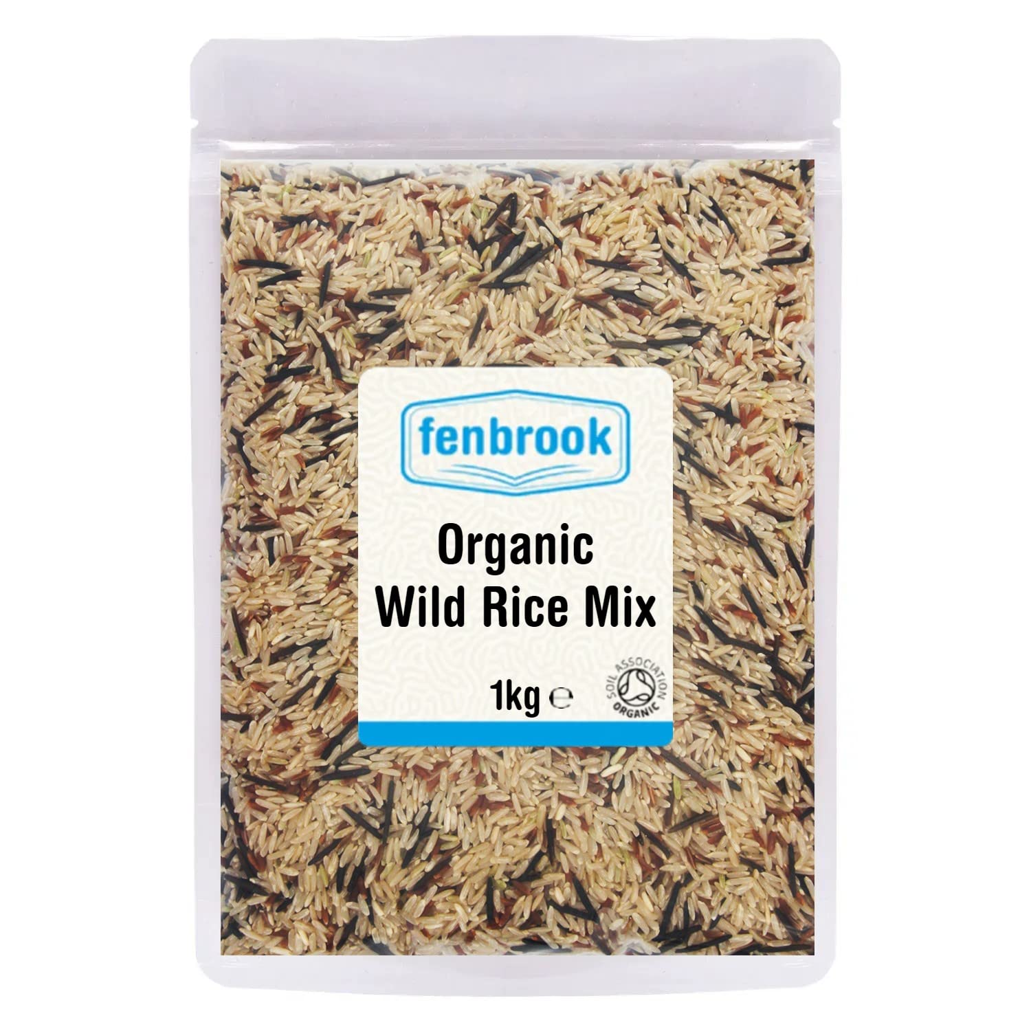 Organic Wild Rice Mix by Fenbrook Organic. Gourmet blend of rice organically grown, harvested and dried in more than one country. Packed in the UK. Fenbrook Organic's organic wild rice mix is a visually stunning, nutritious change from single-variety rices, featuring organic Camargue red rice, organic long-grain brown rice and organic wild rice. Ingredients: Organic Camargue red rice, organic long-grain brown rice and organic wild rice. INGREDIENTS Organic Camargue red rice, organic long-grain brown rice and organic wild rice SAFETY WARNING Packed on premises that handle celery, cereals containing gluten, mustard, peanuts, sesame, soybeans, sulphur dioxide and sulphites and tree nuts (such as almonds, hazelnuts, walnuts, brazil nuts, cashews, pecans, pistachios and macadamia nuts).And the grains in this mix hold their shape better than white rice, making it suitable for a range of dishes in which white rice simply wouldn’t perform – think salads, for starters, but also vegetable bakes and patties for rice burgers. It’s easier to cook than white rice, with a much reduced risk of your culinary masterpieces turning to mush. Try your hand at tasty paellas, mouthwatering mulligatawny, New Orleans-style jambalaya, and much, much more. It's a superb, visually dazzling substitute for plain white or brown rice, with a superior nutritional profile and a higher level of healthy fibre than white varieties. Our organic wild rice mix can be used in any dish in which you’d use brown or white rice – think stir fries, stuffed peppers, side dishes, salads, soups, casseroles, rice bowls, pilafs, paellas… You get the idea – in everything. Our organic wild rice mix has a lovely, slightly nutty flavour, thanks to the inclusion of Camargue rice. Its consistency is very similar to that of regular brown rice – firm and a little chewy, thanks to the bran outer coating that gives each of the three types of grains their colour, and tender in the middle. Fenbrook Organic wild rice mix is a visually stunning, nutritious change from single-variety rices, featuring organic Camargue red rice, organic long-grain brown rice and organic wild rice.