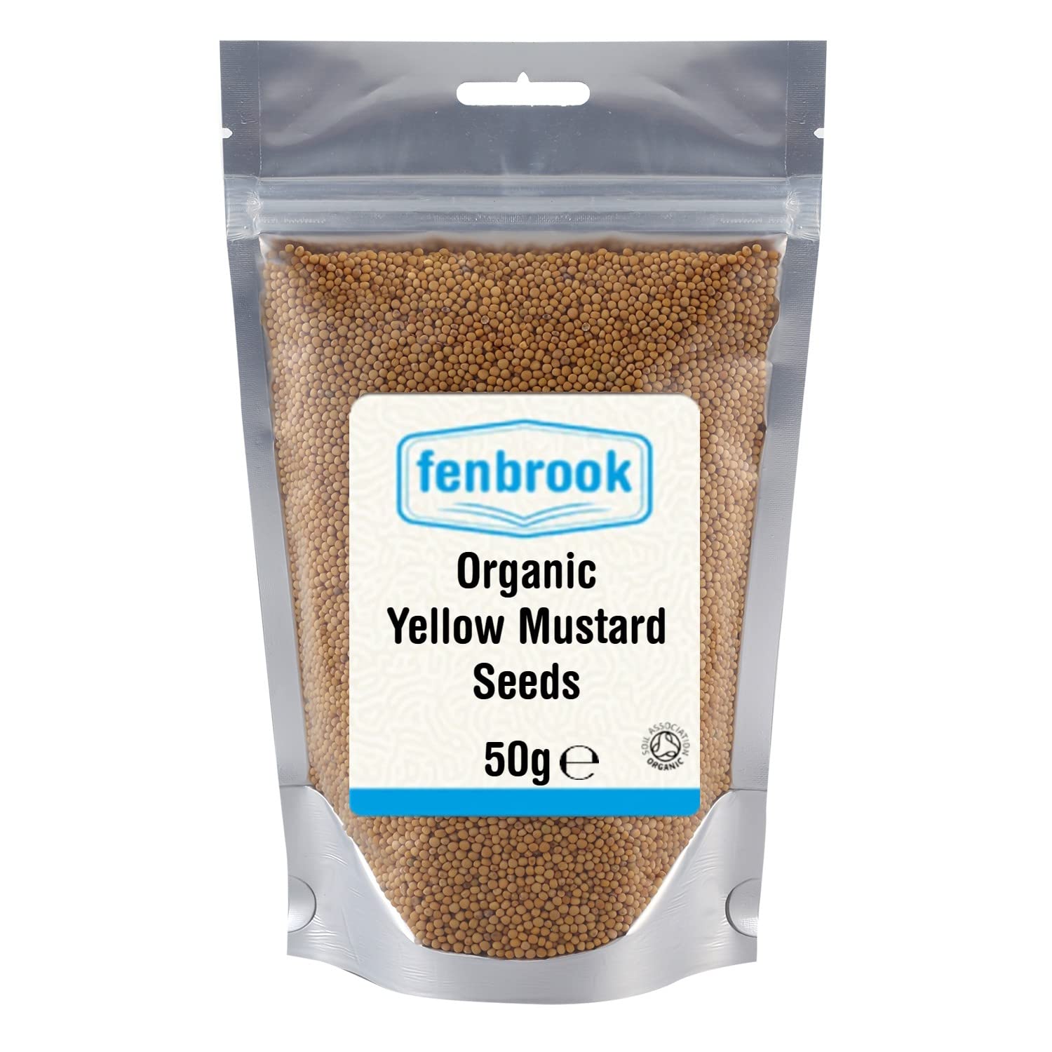 Organic Yellow Mustard Seeds by Fenbrook Organic. Organically grown, harvested and dried in India. Packed in the UK. Yellow mustard is native to the eastern Mediterranean region and comes from the same plant family as brown mustard, wasabi, watercress and horseradish. Its seeds have a pungent, spicy kick that is brought to its fullest expression by grinding them into a powder that acquires an earthy taste when cooked. INGREDIENTS Organic Yellow Mustard SAFETY WARNING Packed on premises that handle celery, cereals containing gluten, mustard, peanuts, sesame, soybeans, sulphur dioxide and sulphites and tree nuts (such as almonds, hazelnuts, walnuts, brazil nuts, cashews, pecans, pistachios and macadamia nuts). See moreProduced to the highest standards Certified organic by the Soil Association. Use yellow mustard seeds in hollandaise dressing, marinades, pickling blends, rubs, soups and sauces. Yellow mustard is a natural pairing for hot and cold meats, fish, Indian specialties such as curries, dals and chutneys, and a wide range of vegetable dishes. USES: Making prepared mustard at home is both easy and addictively experimental – try adding mint, ginger or pepper to the mix, or perhaps smoked paprika, garlic or turmeric, and varying the liquid in it from water to beer, or from vinegar to wine. PURE, PREMIUM PRODUCT: Fenrook's organic yellow mustard seeds are organically grown, harvested and dried in India before being packed without delay to ensure that their distinctive flavour and aroma are perfectly preserved. Yellow mustard is native to the eastern Mediterranean region and comes from the same plant family as brown mustard, wasabi, watercress and horseradish. Its seeds have a pungent, spicy kick that is brought to its fullest expression by grinding them into a powder that acquires an earthy taste when cooked.
