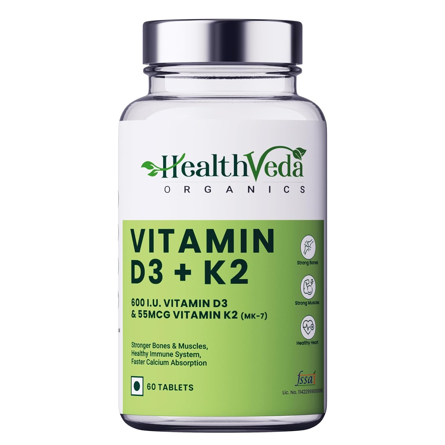 Organics Vitamin D3 (600 IU) + Vitamin K2 as MK7 Supplement (55mcg) | 60 Veg Tablets | Supports Healthy Bones Boosts Immune System & Joint Health | for Men & Women