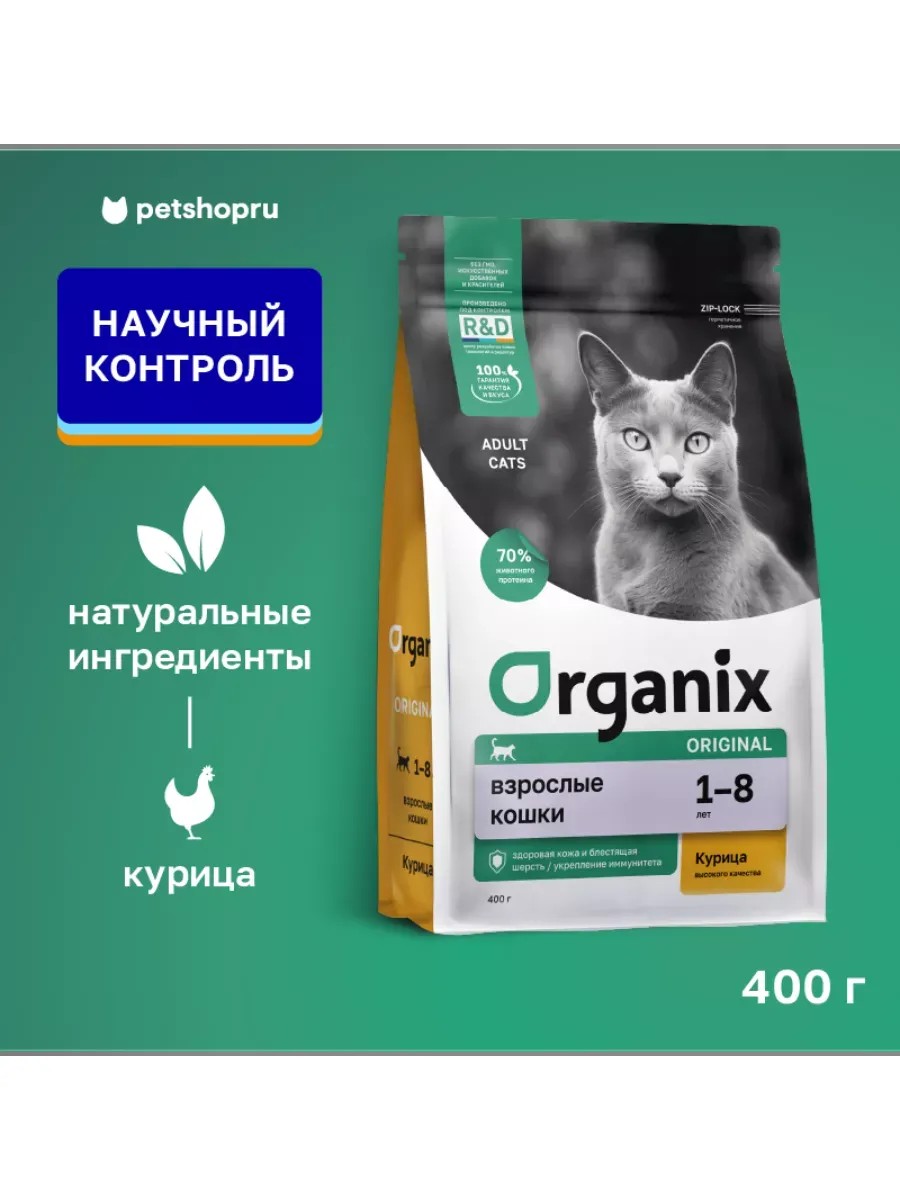 Organix предлагает следующие линейки сухих кормов для кошек: