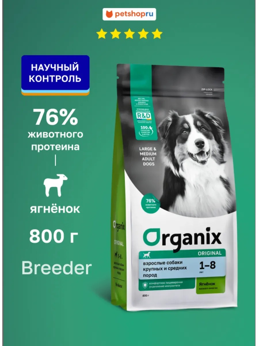 Organix Корм для взрослых собак с ягнёнком, фруктами и овощами 0.8кг