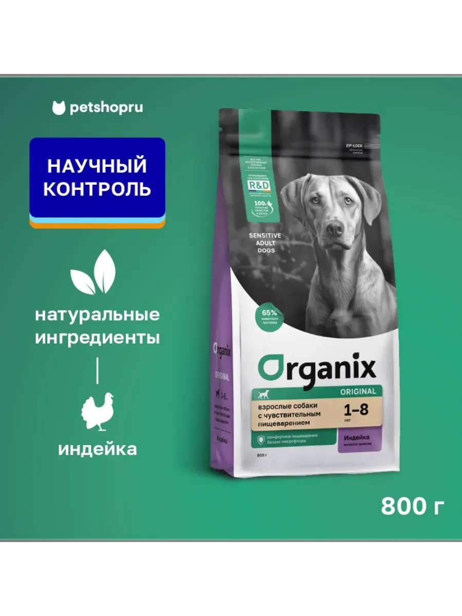 Organix Корм для взрослых собак с индейкой, фруктами и овощами 0,8кг