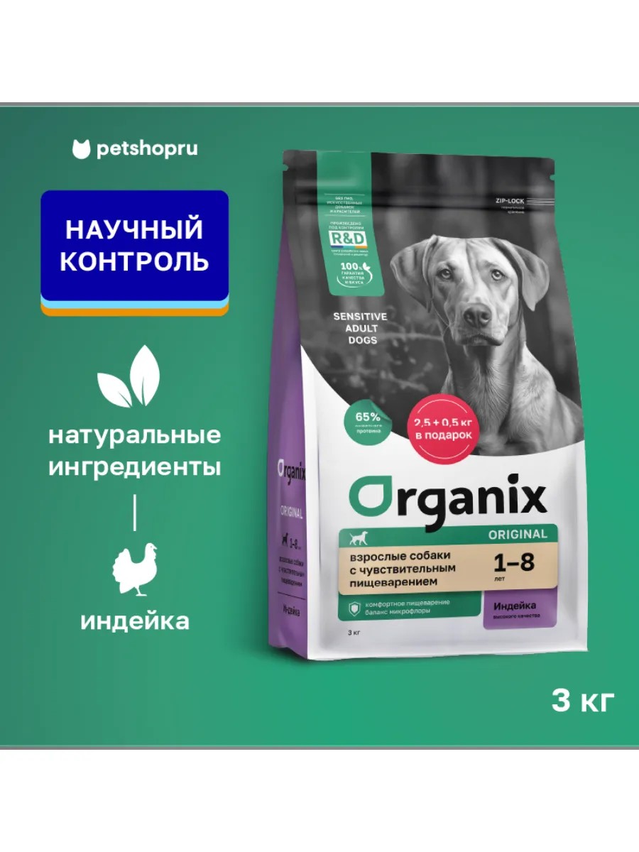 Organix Корм для взрослых собак с индейкой, фруктами и овощами 3 кг