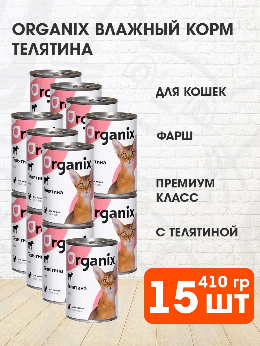 Organix Корм для кошек влажный телятина 410 г 15 шт