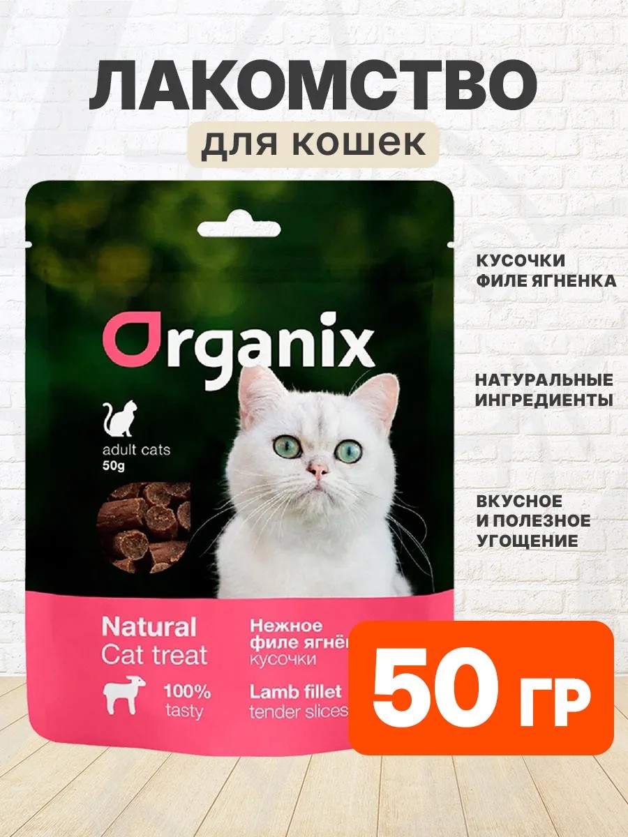 Лакомство ORGANIX для кошек нежные кусочки филе ягненка 50 гр. Нежные кусочки филе ягненка - натуральное, вкусное и полезное лакомство для кошек.