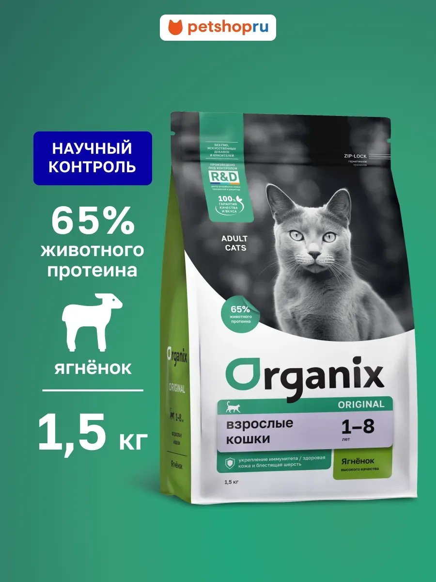 Organix Сухой корм для кошек с ягнёнком, фруктами и овощами, 1,5 кг