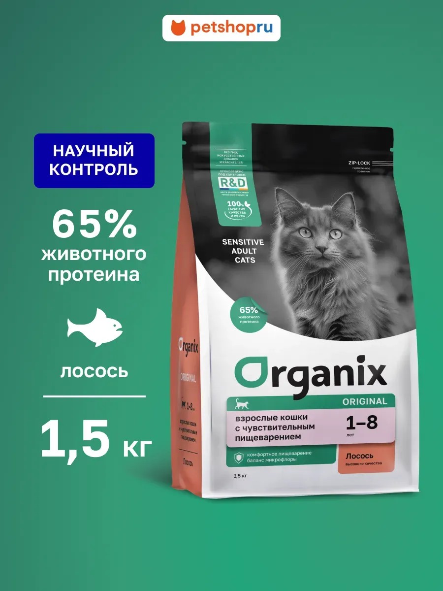 Organix Сухой корм для кошек с лососем, фруктами и овощами, 1,5 кг