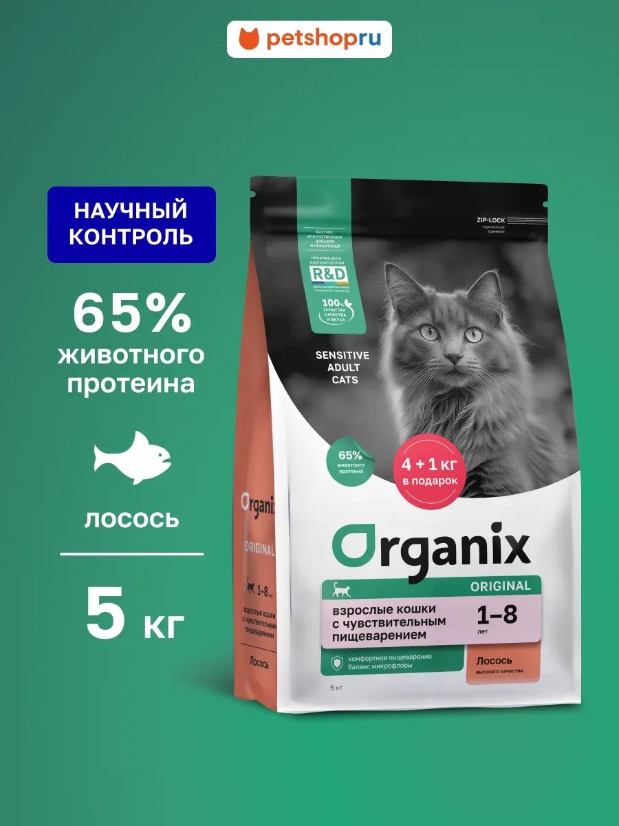 Organix Сухой корм для взрослых кошек с лососем, фруктами и овощами для чувствительного пищеварения Adult Sensitive Cat Salmon