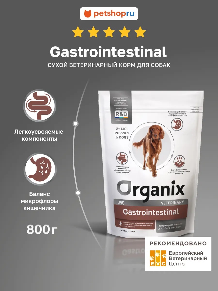 · Organix vet GASTROINTESTINAL dry food for dogs with digestive disorders, Organix vet absorption in the intestine, during the rehabilitation period and with exhaustion
