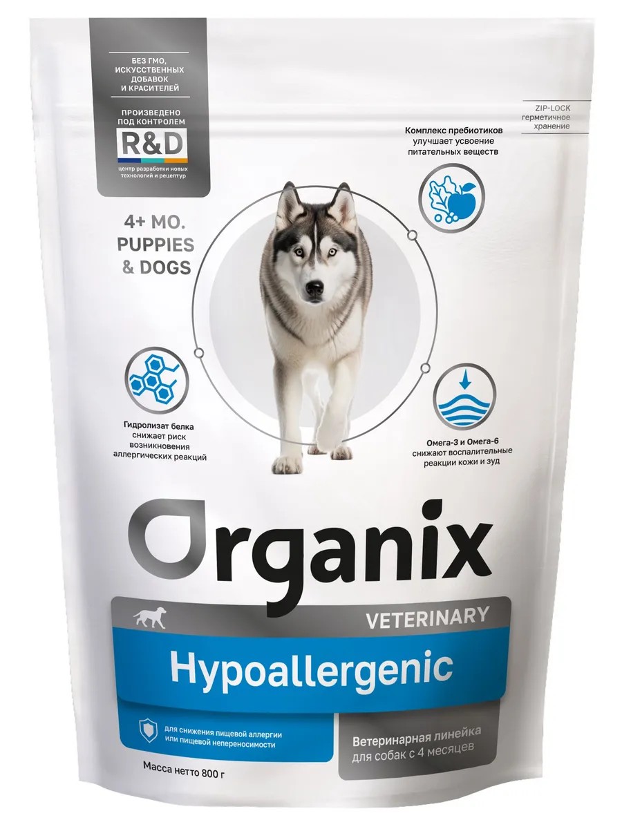 | Полное наименование товара | Organix Veterinary сухой корм для собак HYPOALLERGENIC снижение пищевой аллергии или пищевой непереносимости 800 г |