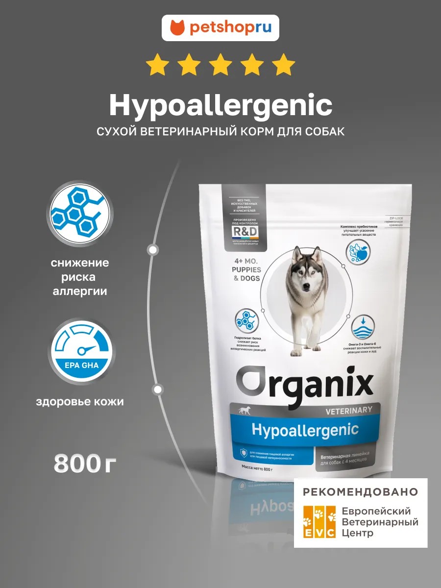 Полнорационный сухой корм Organix Veterinary Hypoallergenic – это ветеринарное диетическое питание, созданное для минимизации пищевой непереносимости ингредиентов и питательных веществ у собак.