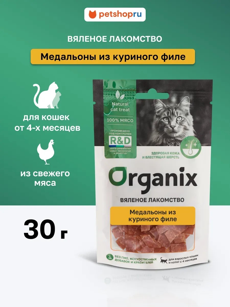 Organix Вяленое лакомство для кошек Медальоны из куриного филе