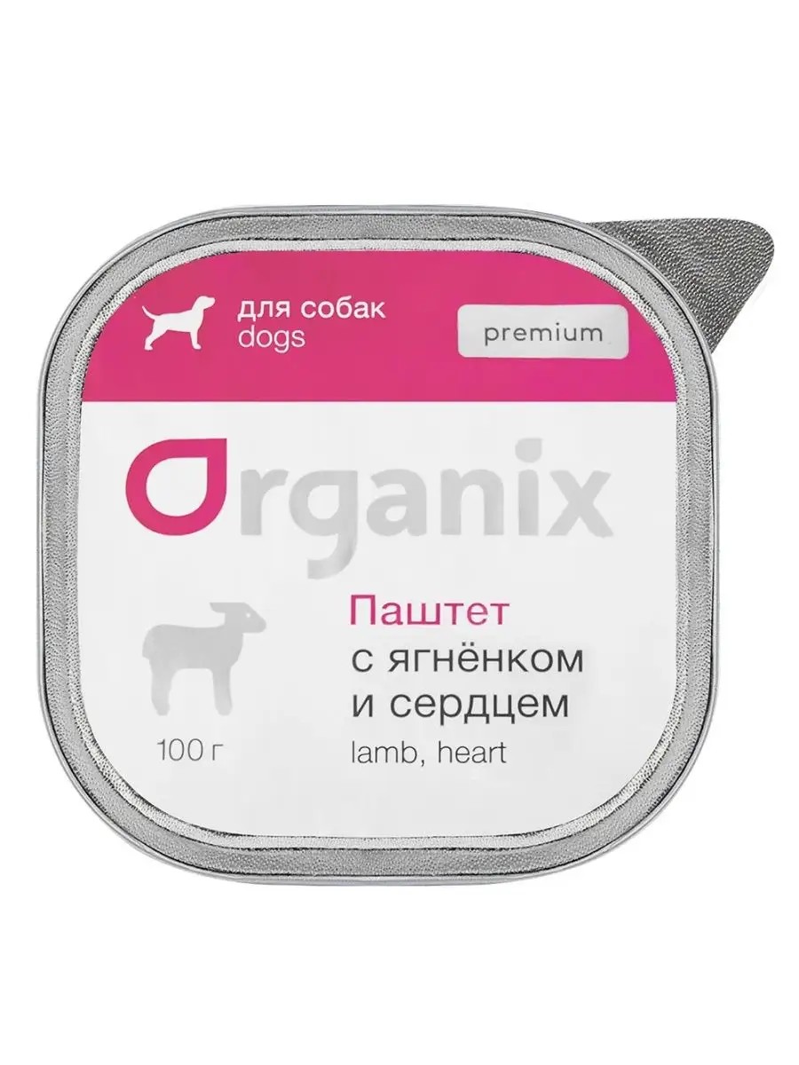 Organix Паштет ягненок с сердцем для собак 85% мяса 15 шт по 100 гр