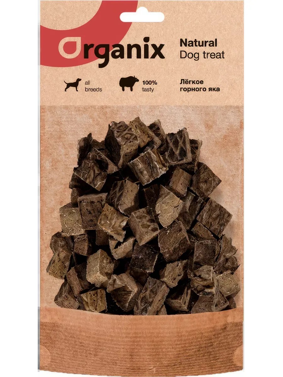 Organix Premium Mountain Yak Lung Treat for Dogs, 50g. Organix Premium Mountain Yak Lung Treat for Dogs, 50g. Gentle and gradual drying technology preserves all the beneficial substances and microelements of Organix treats. No salt, GMOs, dyes, or preservatives. Ingredients: Mountain Yak Lung