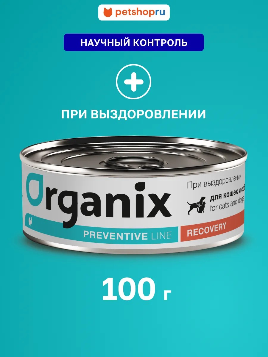 Мясные консервы Organix Recovery – полнорационный восстанавливающий корм для собак и кошек всех возрастов в период анорексии, выздоровления, послеоперационного периода. Отличается высокой усвояемостью и калорийностью, увеличенным количеством белка и высокой концентрацией незаменимых питательных веществ. Обладает нежной текстурой и привлекательным ароматом, подходит для энтерального кормления.