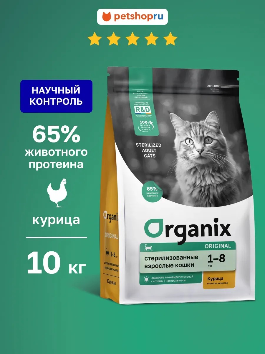 Organix Корм для стерилизованных кошек с курицей Sterilised 36 10 кг