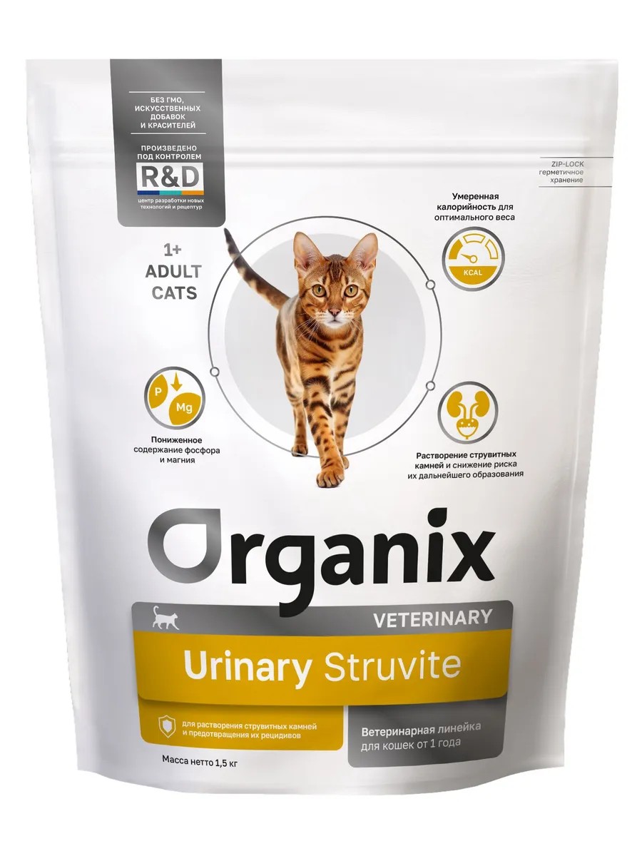 | Полное наименование товара | Organix Cat Veterinary сухой корм для взрослых кошек URINARY Struvite для растворения струвитных камней и предотвращения их рецидивов 1.5 кг |