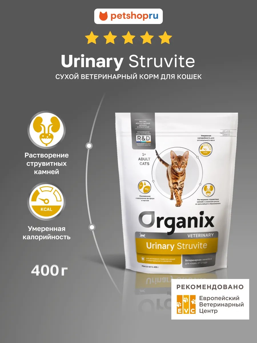 · Organix vet URINARY Struvite dry food for cats with urolithiasis (to dissolve struvite stones to prevent their recurrence)
