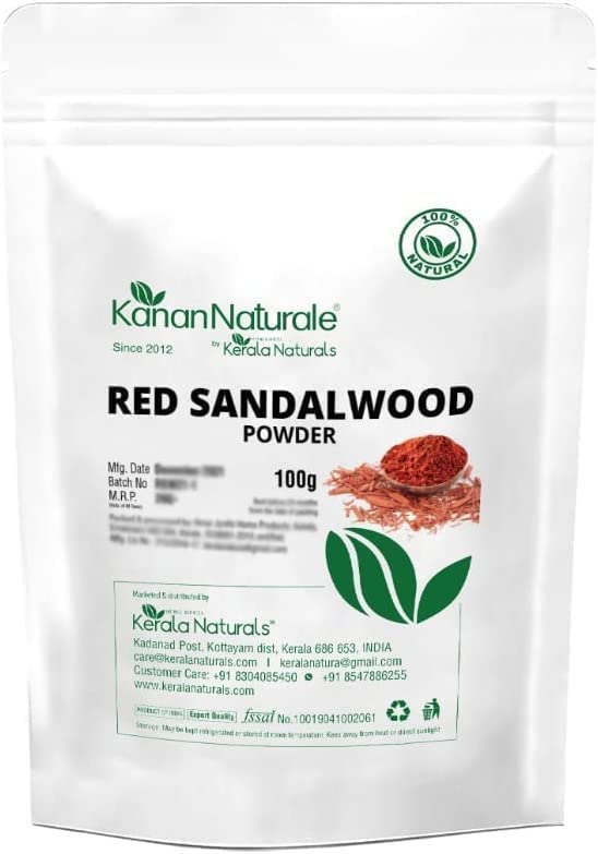The finest powder prepared from red sandalwood. Used for improving the beauty of the skin and reducing pimples. It works deep into the skin and removes all impurities and gives a fresh appearance. A quality product from Kerala NaturalsSoftening and smoothing, anti-stain and stain removal. Selected from the best quality red sandal. 100 pure and natural.Ayurvedische Natuurlijke Rode Sandelhout Poeder Raktha Chandan - 100Gm Het fijnste poeder bereid uit rood sandelhout. Gebruikt voor het verbeteren van de schoonheid van de huid en het verminderen van puistjes. Het werkt diep in de huid en verwijdert alle onzuiverheden en geeft een frisse uitstraling. Een kwaliteitsproduct van Kerala NaturalsVerzachtend en gladmaken, anti-vlekken en vlekken verwijderen. Geselecteerd uit de beste kwaliteit rode sandaal. 100 puur en natuurlijk.
